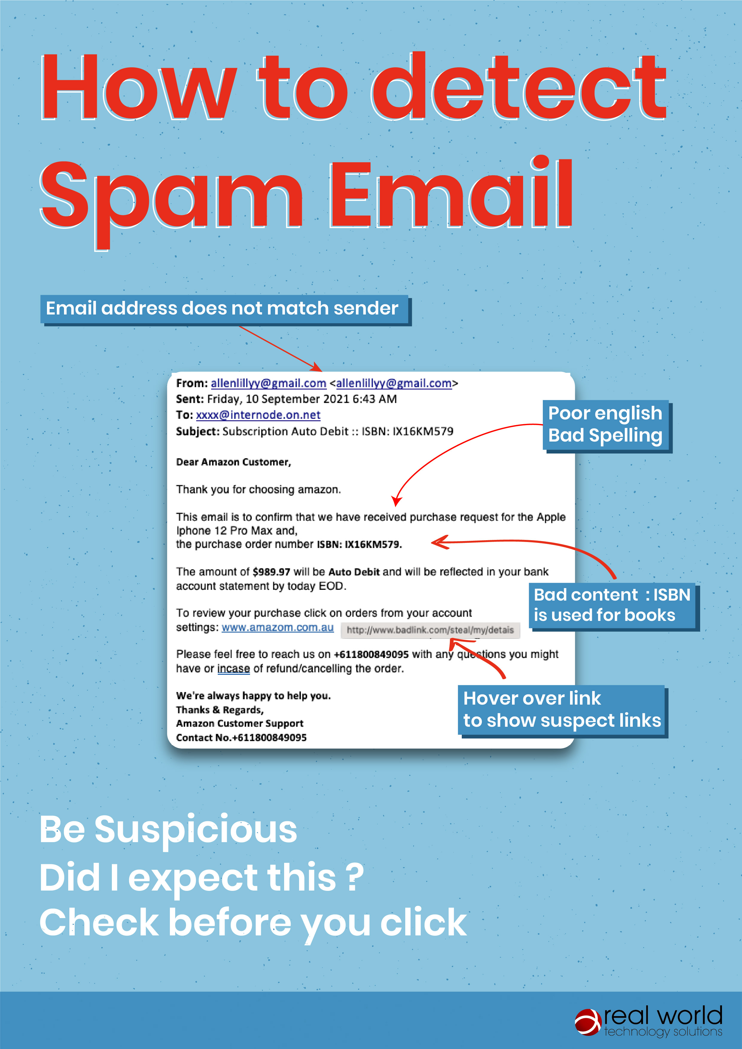 Awareness Cards - detecting spam Kym Schwarz March 11, 2022 03:53 Updated Detect Spam_Wlogo_V1.jpg 900 KB Download Related articles Awareness cards - Cyber security is your responsibility Remote Access Agreement Comments 0 comments Please sign in to leave a comment.